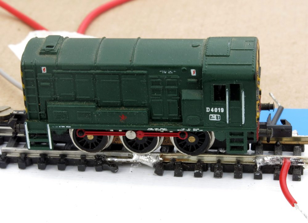 For any train buffs in the Shed, I'm modelling in 'N' gauge to allow a reasonable amount of track on a small (18"x24", or 45x60cm) baseboard that I can work with on the dining table. This loco is a bit smaller than my thumb, and neat soldering to the tracks is a bit of a challenge when you are as out of practice as me. Tim, don't giggle!