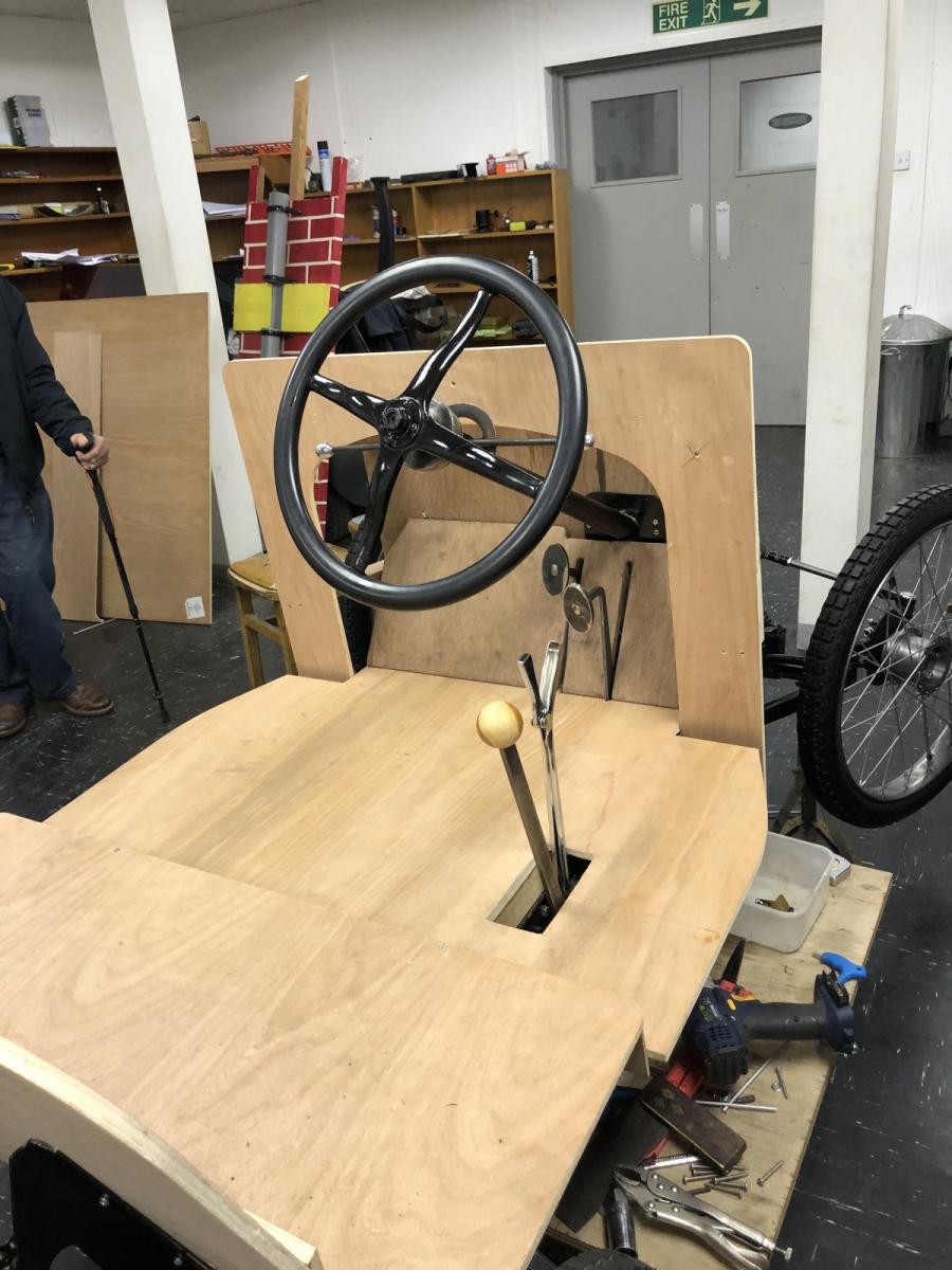 The month was largely spent wrangling controls to clear existing components such as the steering column, exhaust and cockpit floor. Fitting the dashboard, cab and seat floors has allowed us to clear most of the control/component fouls and has made the chassis more car-like. Next month we will need to remove the floor and seat bases to fit access hatches top underfloor controls.