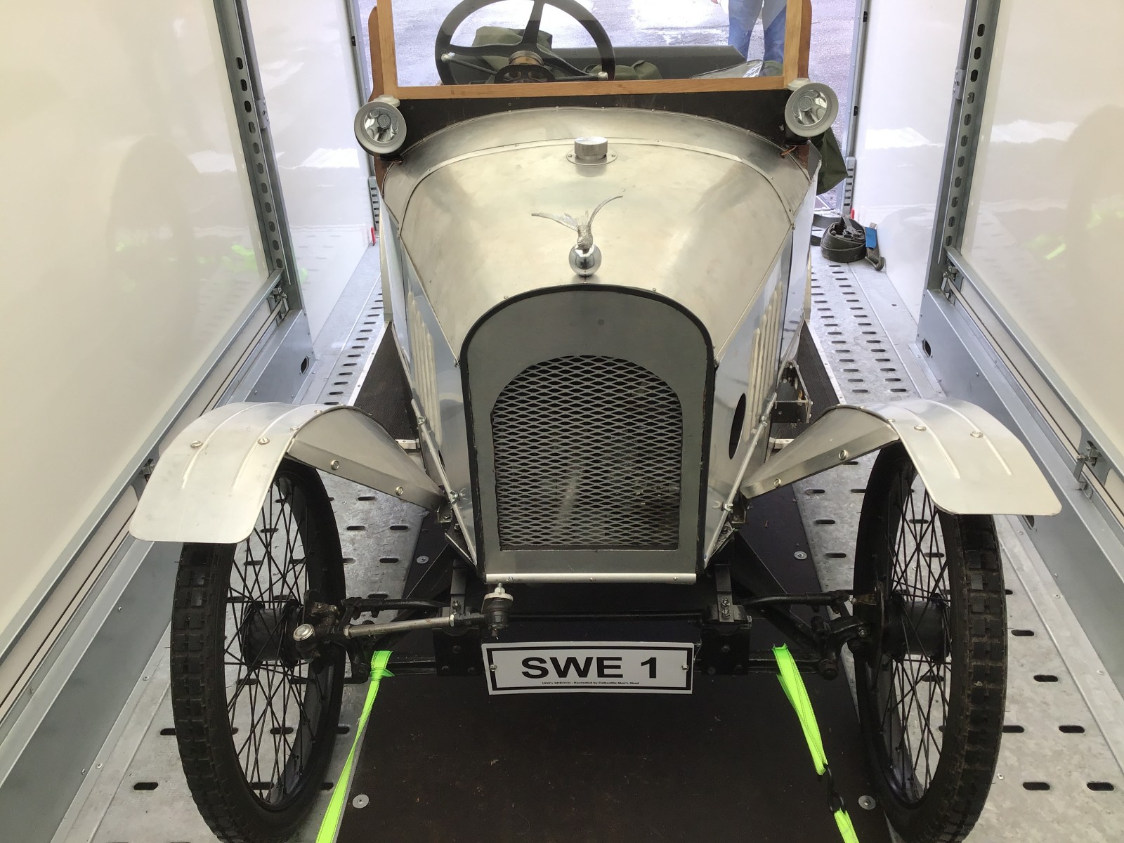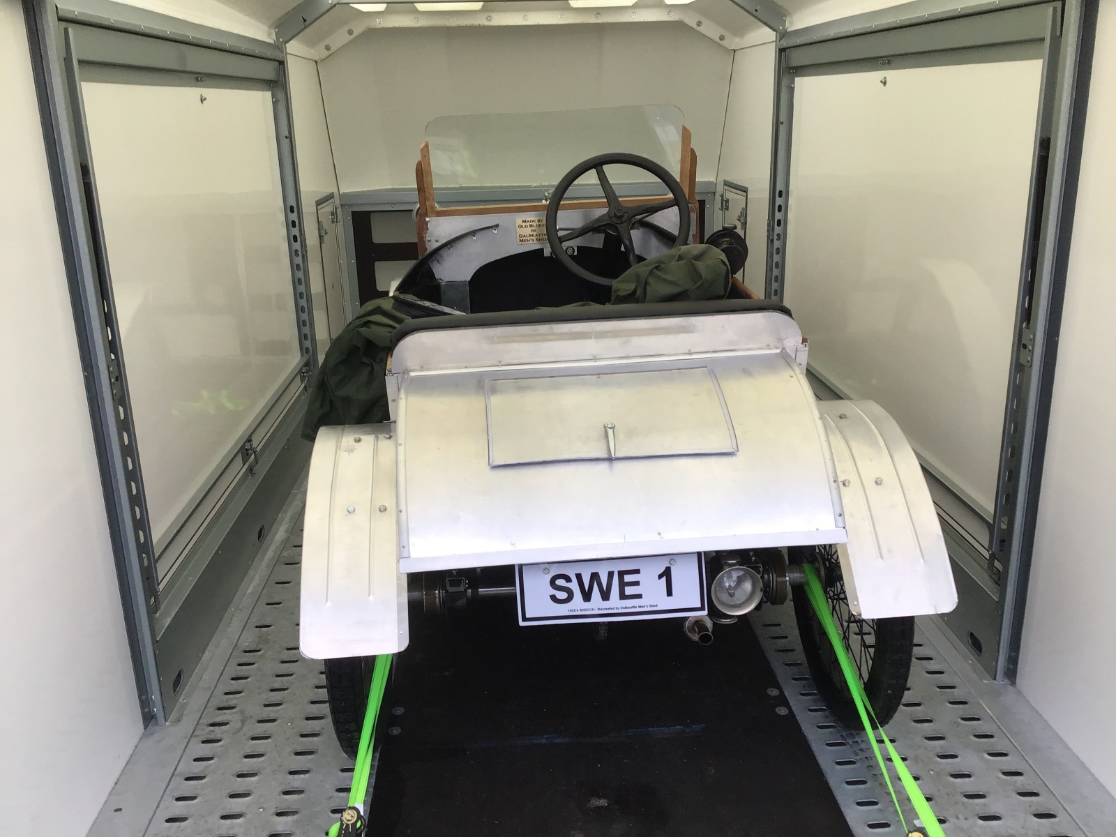 With the Skeoch now ready for paint, it has been loaded into our display trailer where it sits waiting for space in the paintshop. Meanwhile thoughts turn to post completion displays as our original plan to unveil the Skeoch at the 2021 Scottish Motor Show [100 years after its first exhibition] has, like Burns said of many plans, “gang aft agley”. Even without the restrictions of lockdown the Scottish Motor Show has not run for several years and is not planned for 2021 too.
