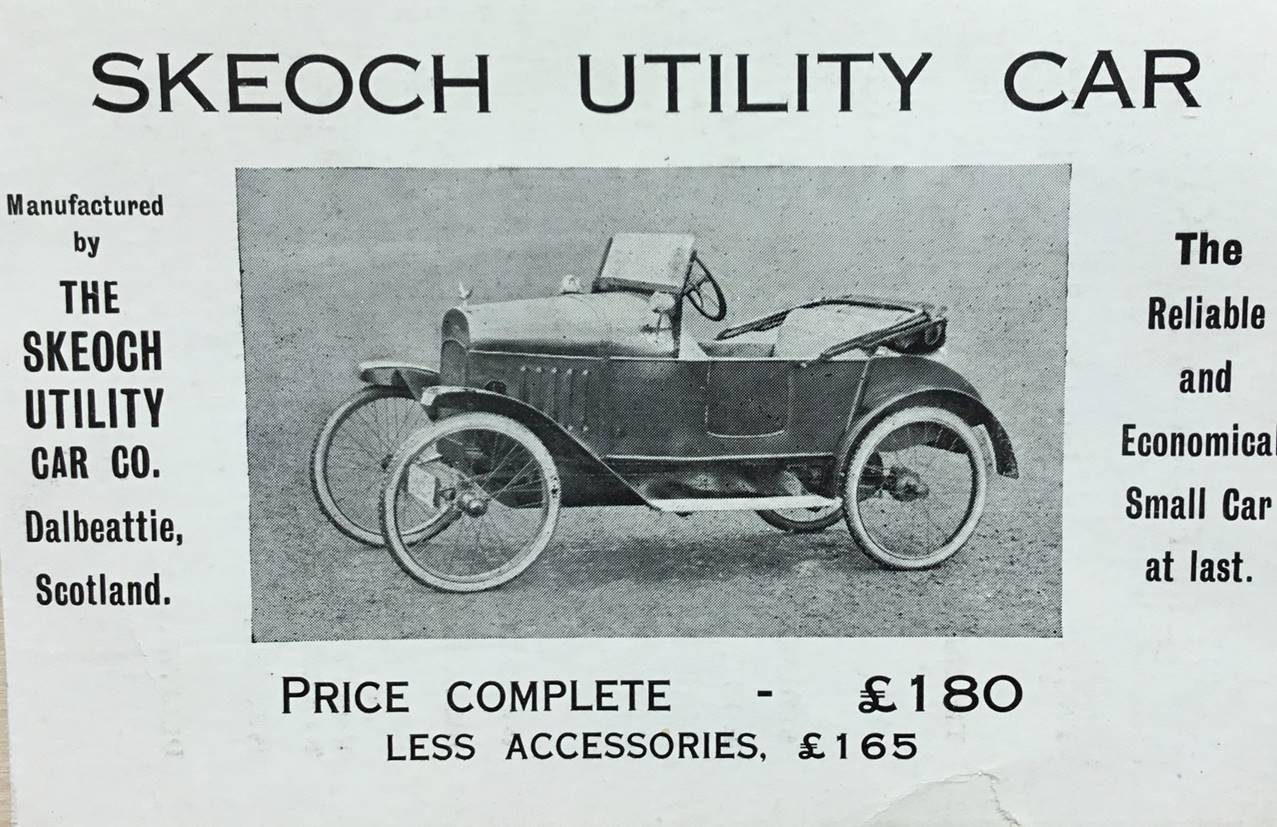 Fiona Sinclair, Archie & Betty Sinclair - donation of Ron Skeoch’s collection of contemporary parts, copies of James B Skeoch’s drawings (9 in total), photographs (4 number) & brochure, original Skeoch radiator badge. February – April 2018.